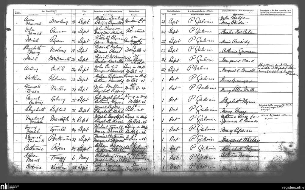 St. Andrew's, Dublin city; County of Dublin; Archdiocese of Dublin. Baptisms, Sep. 1897 to Oct. 1897