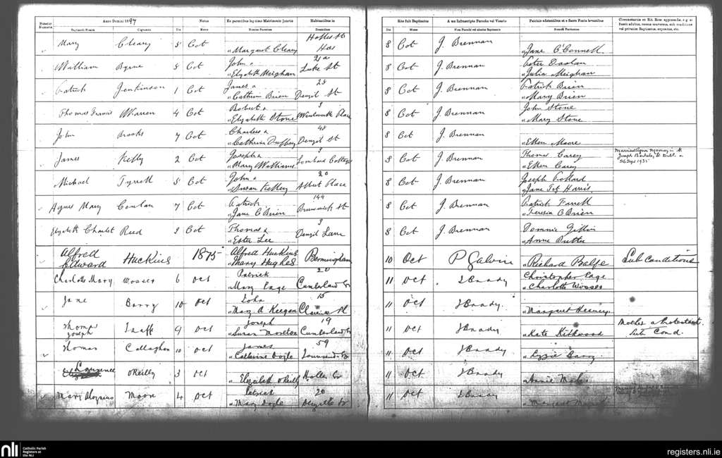St. Andrew's, Dublin city; County of Dublin; Archdiocese of Dublin. Baptisms, Oct. 1897