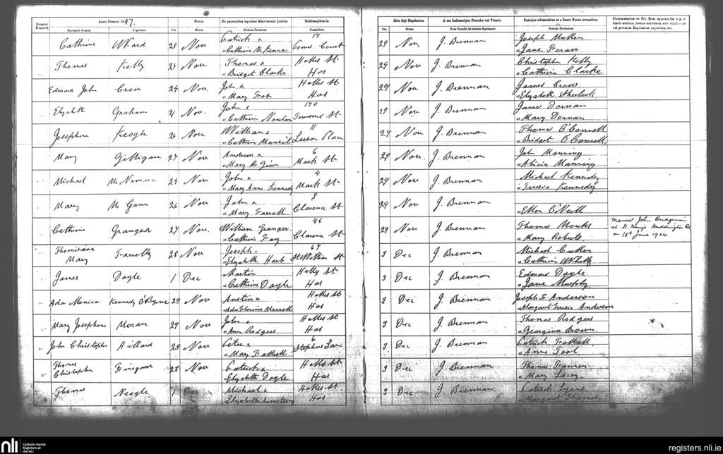 St. Andrew's, Dublin city; County of Dublin; Archdiocese of Dublin. Baptisms, Nov. 1897 to Dec. 1897