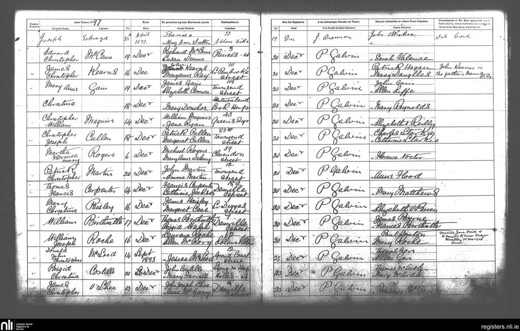 St. Andrew's, Dublin city; County of Dublin; Archdiocese of Dublin. Baptisms, Dec. 1897