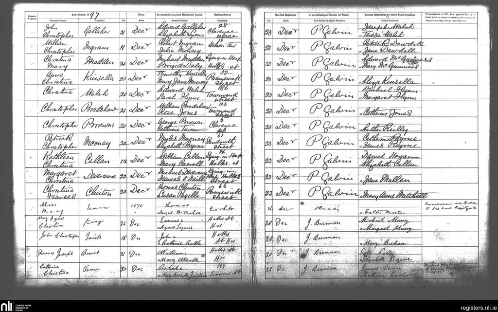 St. Andrew's, Dublin city; County of Dublin; Archdiocese of Dublin. Baptisms, Dec. 1897