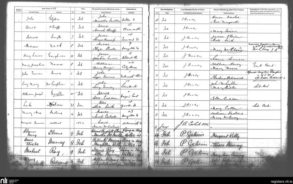 St. Andrew's, Dublin city; County of Dublin; Archdiocese of Dublin. Baptisms, Feb. 1898