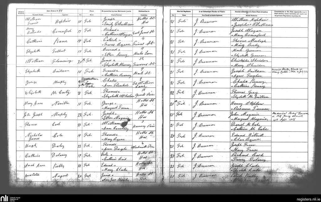 St. Andrew's, Dublin city; County of Dublin; Archdiocese of Dublin. Baptisms, Feb. 1898
