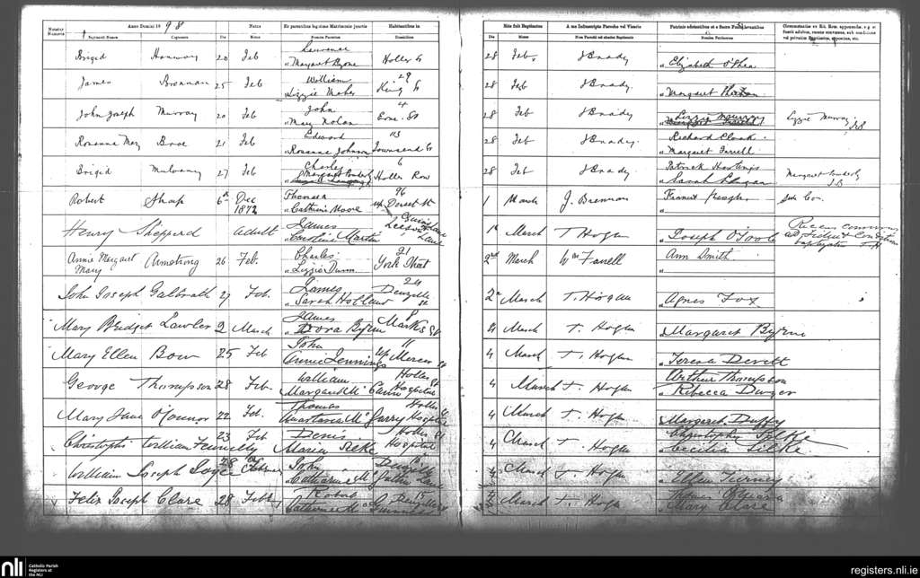 St. Andrew's, Dublin city; County of Dublin; Archdiocese of Dublin. Baptisms, Feb. 1898 to Mar. 1898