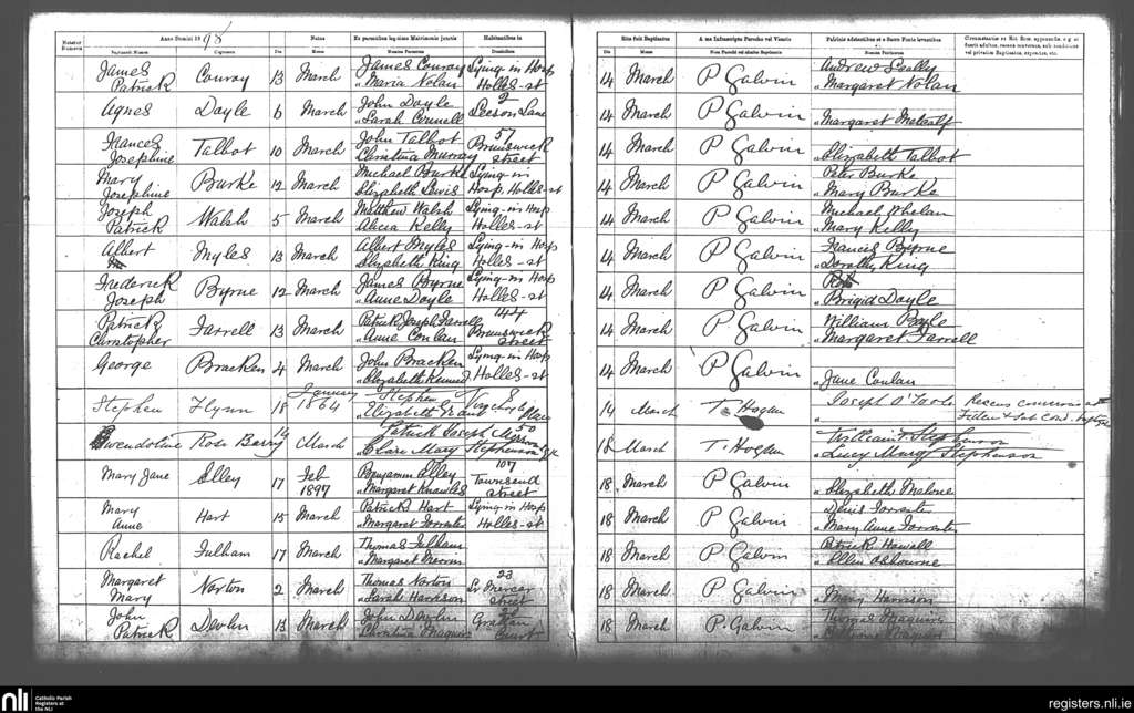 St. Andrew's, Dublin city; County of Dublin; Archdiocese of Dublin. Baptisms, Mar. 1898