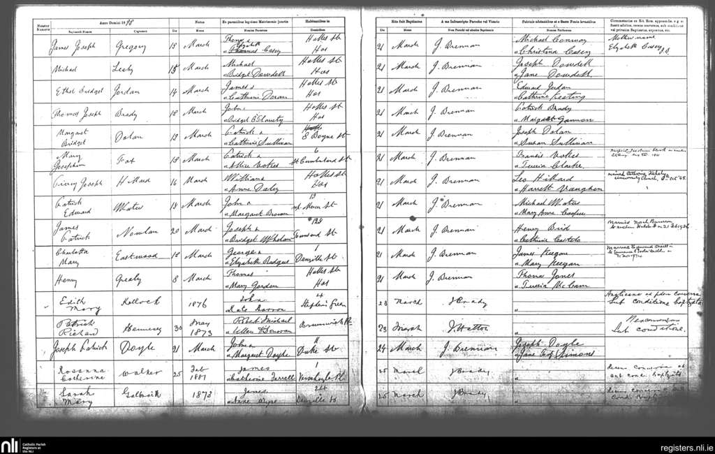 St. Andrew's, Dublin city; County of Dublin; Archdiocese of Dublin. Baptisms, Mar. 1898