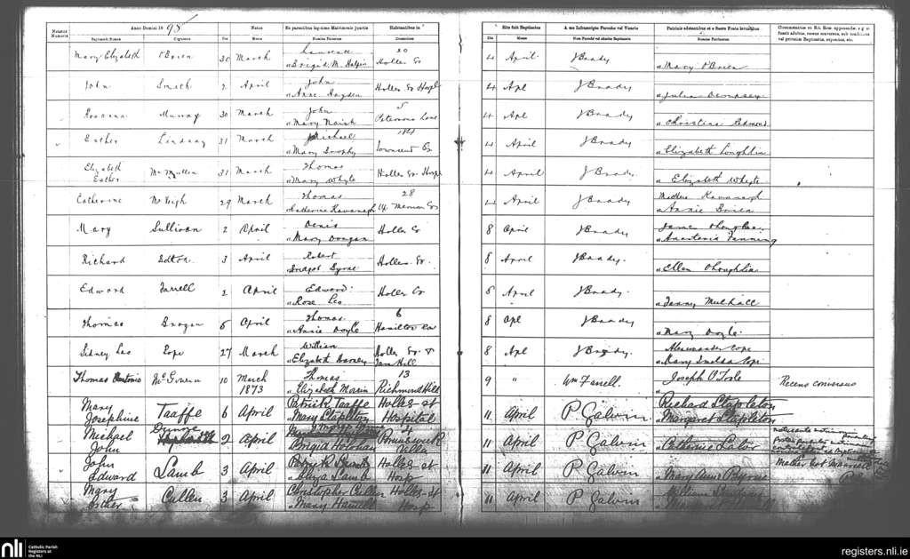 St. Andrew's, Dublin city; County of Dublin; Archdiocese of Dublin. Baptisms, Apr. 1898