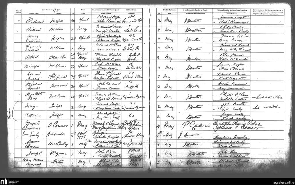 St. Andrew's, Dublin city; County of Dublin; Archdiocese of Dublin. Baptisms, May 1898