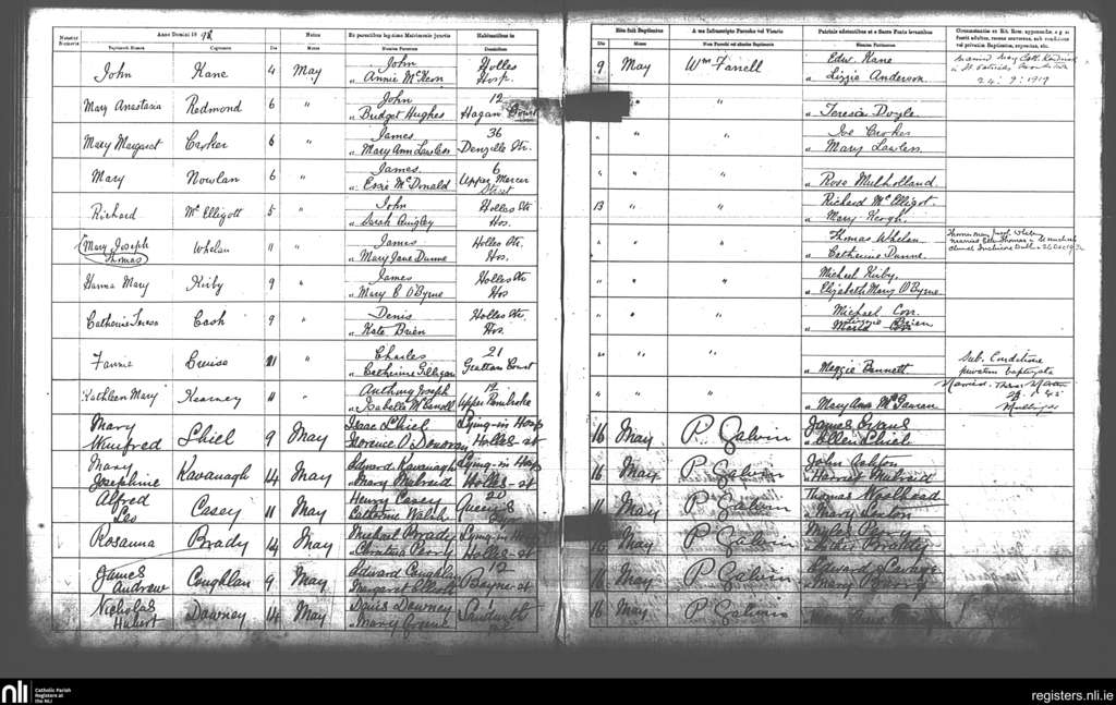St. Andrew's, Dublin city; County of Dublin; Archdiocese of Dublin. Baptisms, May 1898