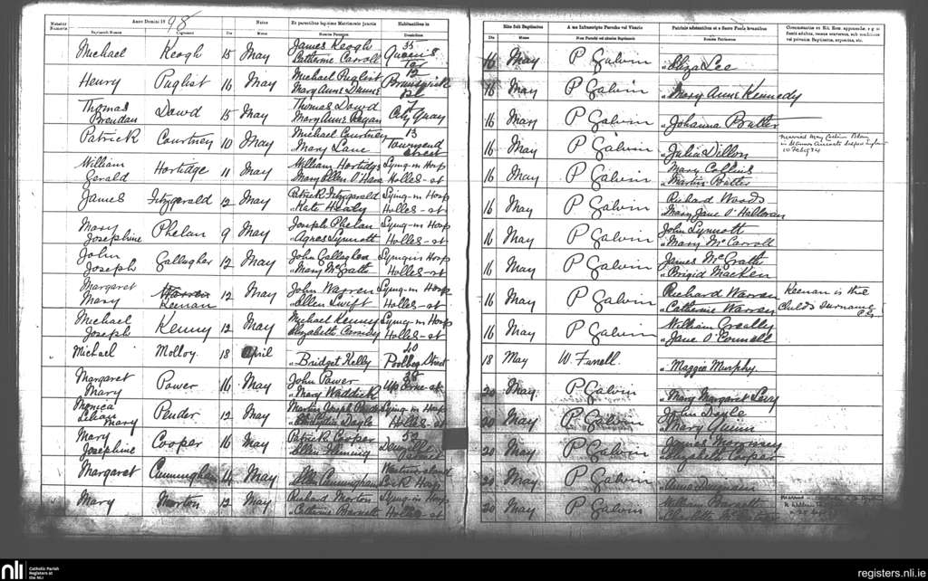 St. Andrew's, Dublin city; County of Dublin; Archdiocese of Dublin. Baptisms, May 1898