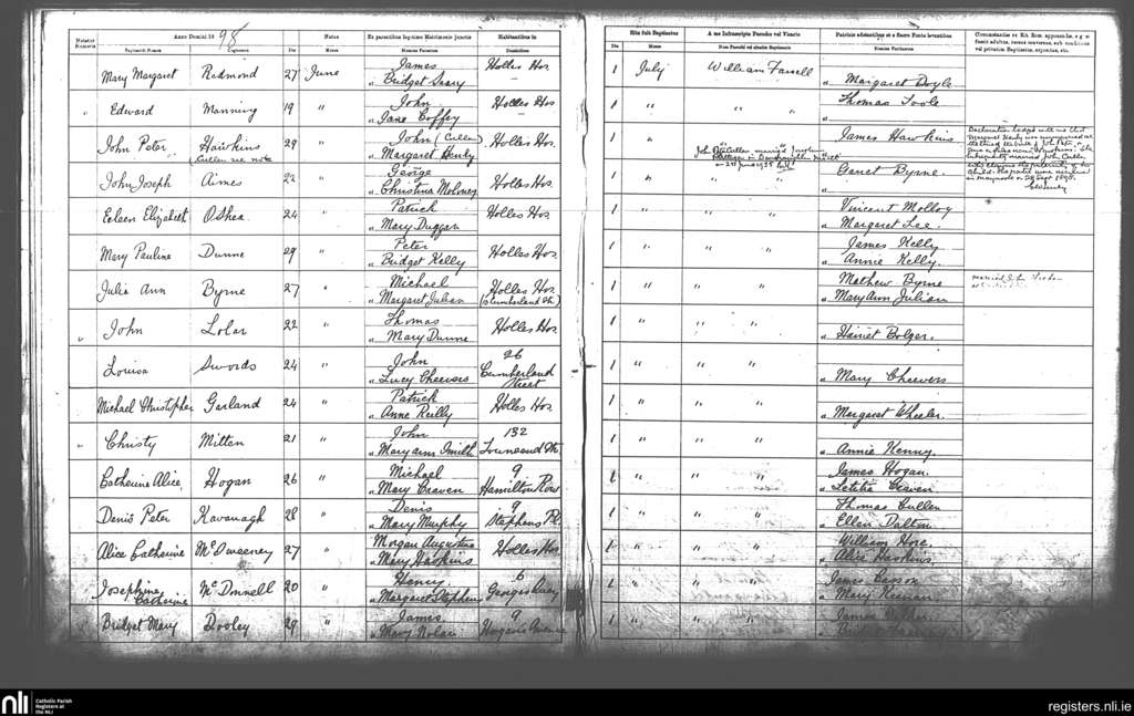 St. Andrew's, Dublin city; County of Dublin; Archdiocese of Dublin. Baptisms, July 1898