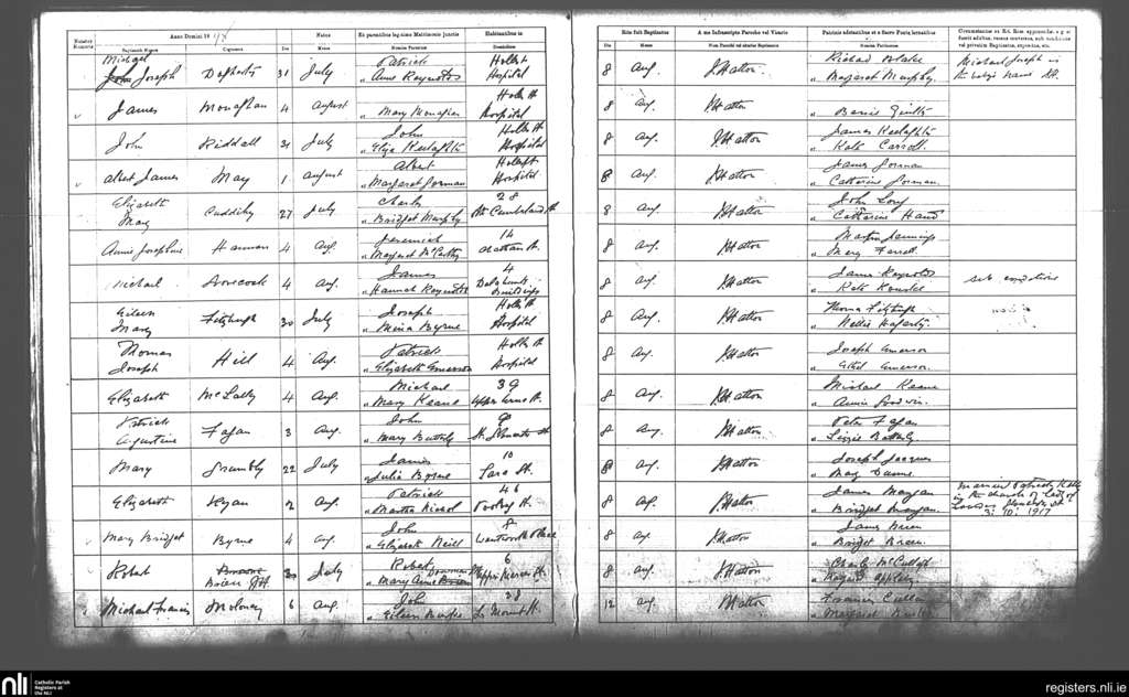 St. Andrew's, Dublin city; County of Dublin; Archdiocese of Dublin. Baptisms, Aug. 1898