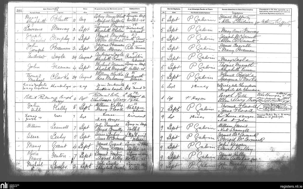 St. Andrew's, Dublin city; County of Dublin; Archdiocese of Dublin. Baptisms, Sep. 1898