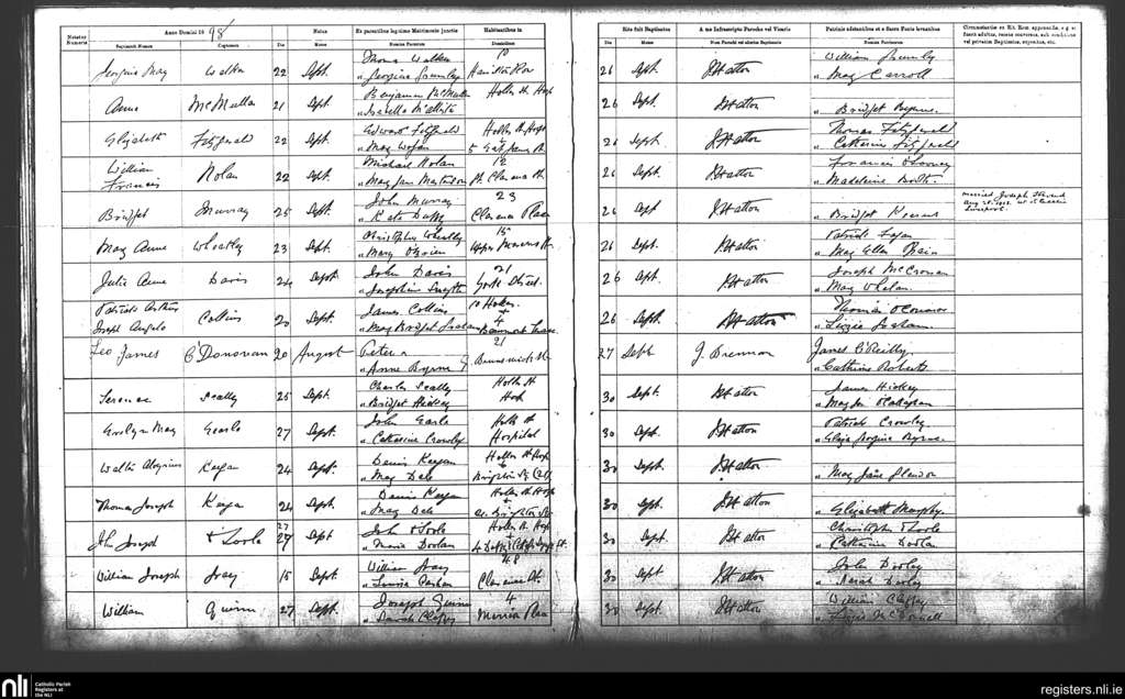 St. Andrew's, Dublin city; County of Dublin; Archdiocese of Dublin. Baptisms, Sep. 1898