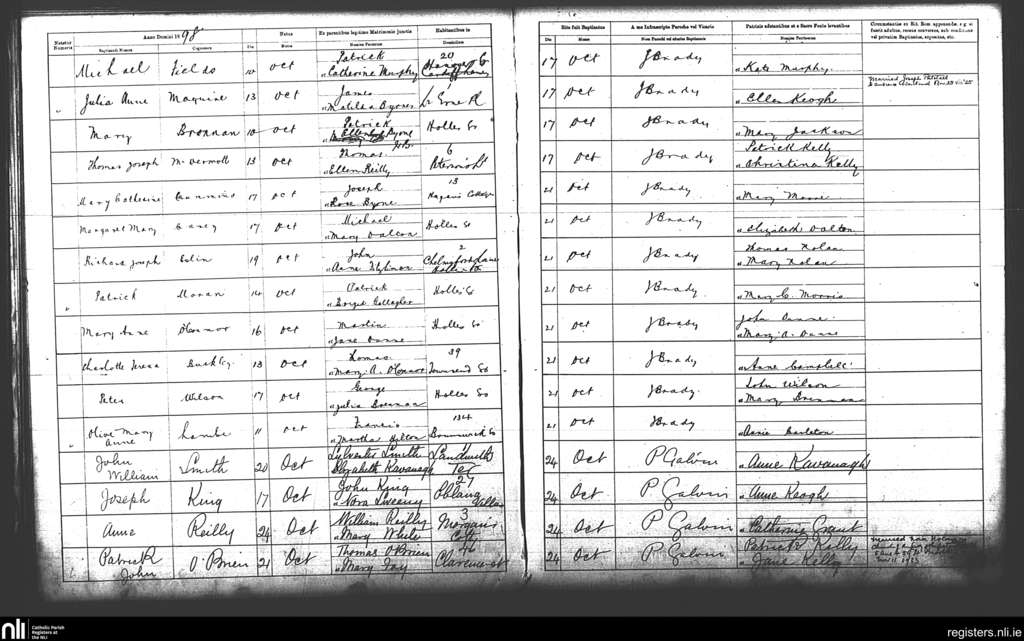 St. Andrew's, Dublin city; County of Dublin; Archdiocese of Dublin. Baptisms, Oct. 1898