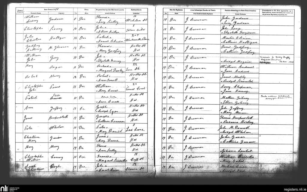 St. Andrew's, Dublin city; County of Dublin; Archdiocese of Dublin. Baptisms, Dec. 1898