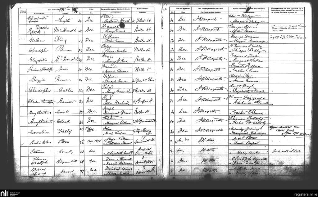 St. Andrew's, Dublin city; County of Dublin; Archdiocese of Dublin. Baptisms, Dec. 1898 to Jan. 1899