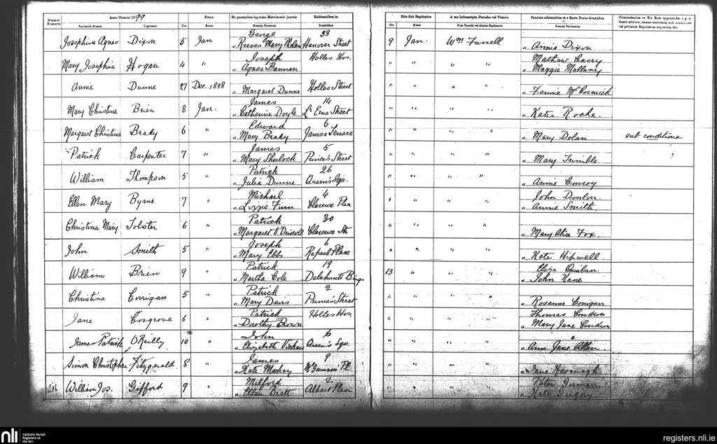 St. Andrew's, Dublin city; County of Dublin; Archdiocese of Dublin. Baptisms, Jan. 1899
