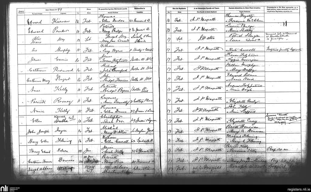 St. Andrew's, Dublin city; County of Dublin; Archdiocese of Dublin. Baptisms, Feb. 1899