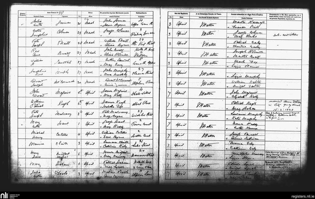 St. Andrew's, Dublin city; County of Dublin; Archdiocese of Dublin. Baptisms, Apr. 1899