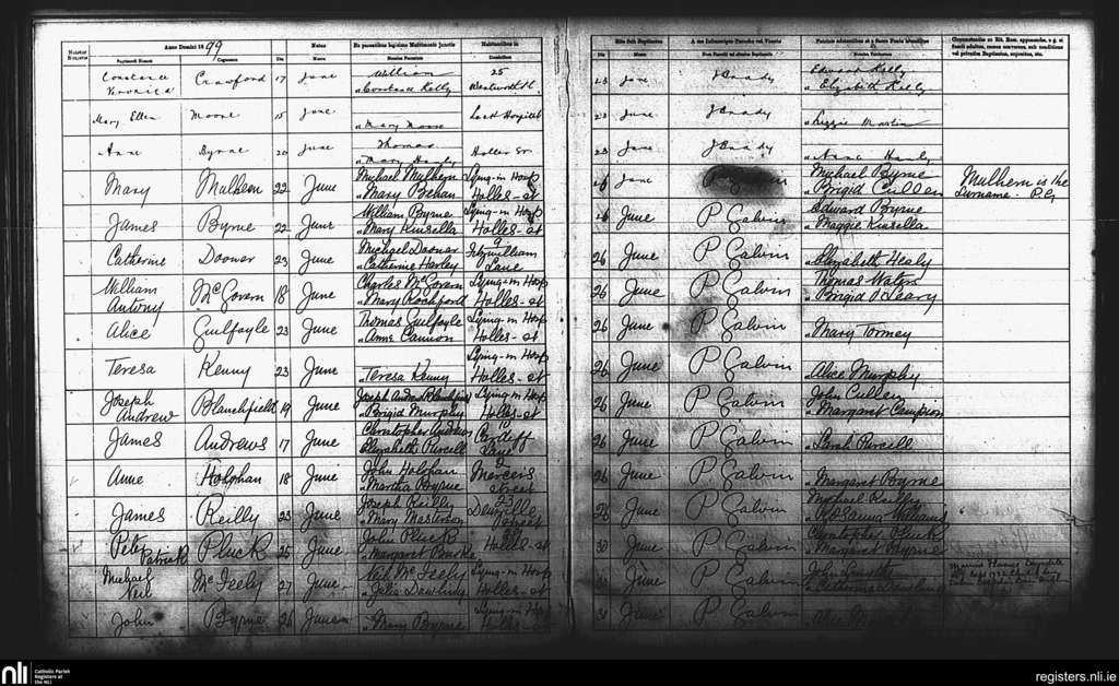 St. Andrew's, Dublin city; County of Dublin; Archdiocese of Dublin. Baptisms, June 1899