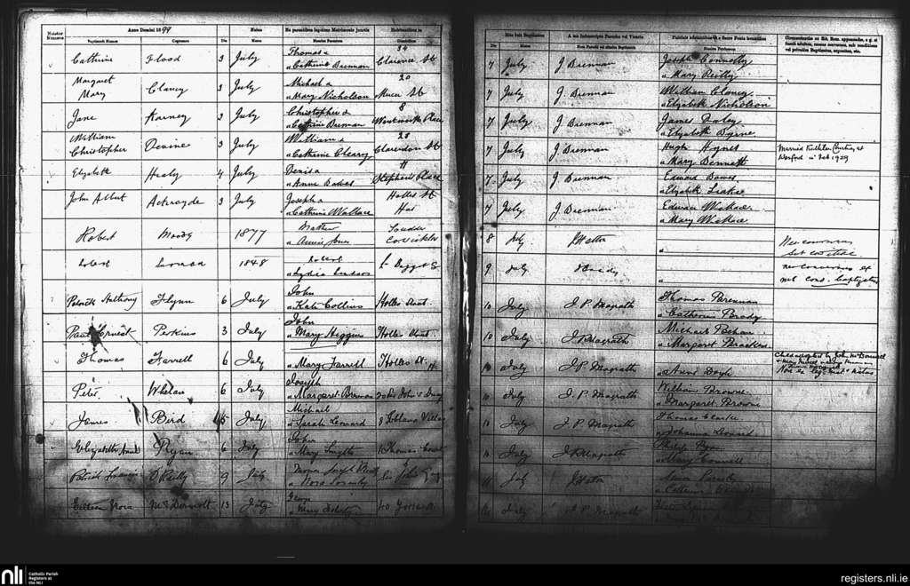 St. Andrew's, Dublin city; County of Dublin; Archdiocese of Dublin. Baptisms, July 1899