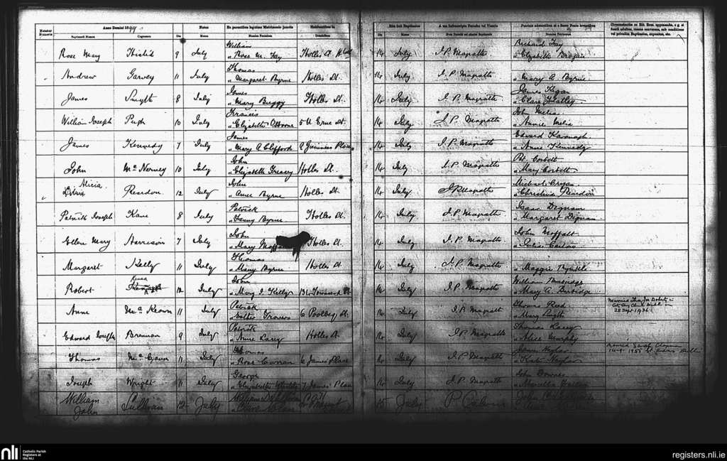St. Andrew's, Dublin city; County of Dublin; Archdiocese of Dublin. Baptisms, July 1899