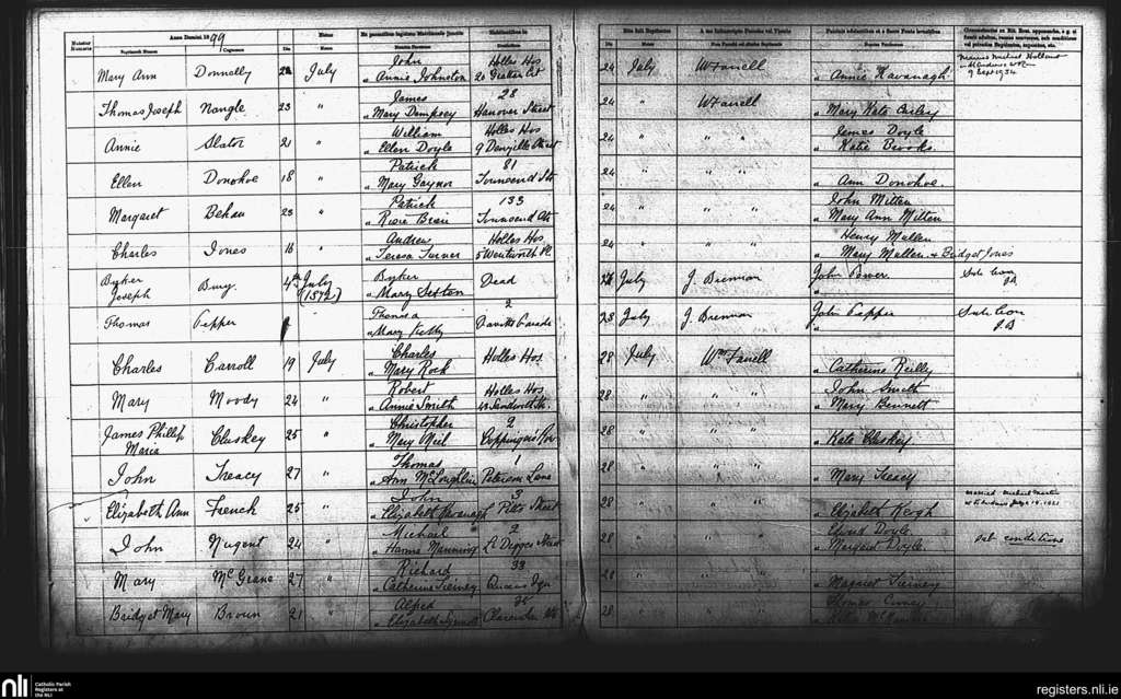 St. Andrew's, Dublin city; County of Dublin; Archdiocese of Dublin. Baptisms, July 1899