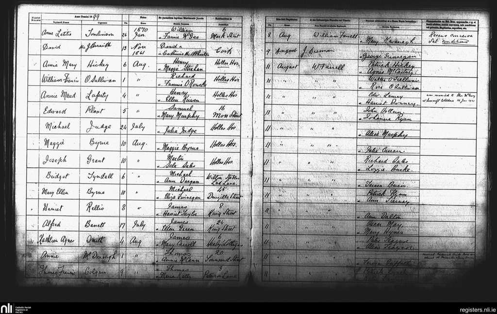 St. Andrew's, Dublin city; County of Dublin; Archdiocese of Dublin. Baptisms, Aug. 1899