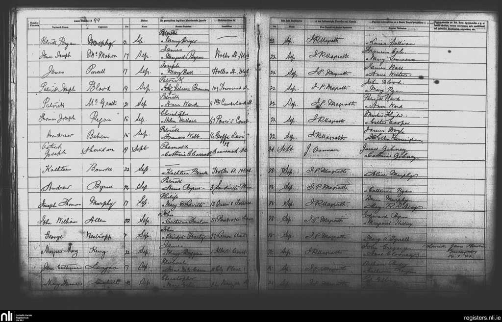 St. Andrew's, Dublin city; County of Dublin; Archdiocese of Dublin. Baptisms, Sep. 1899