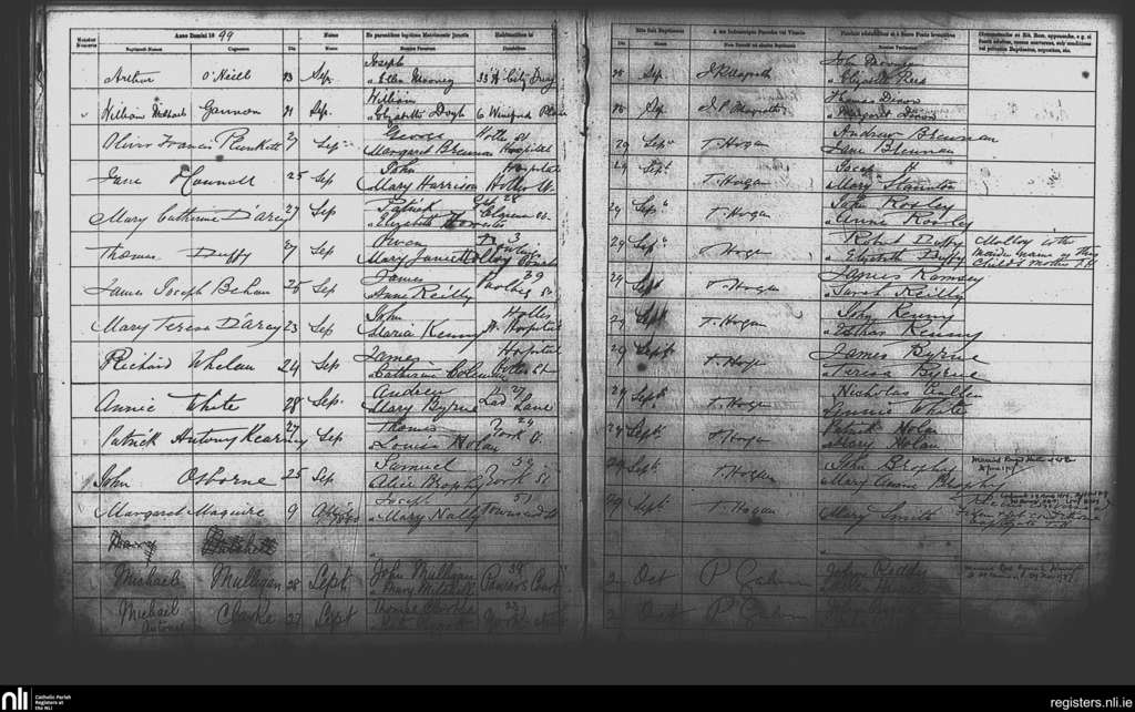 St. Andrew's, Dublin city; County of Dublin; Archdiocese of Dublin. Baptisms, Sep. 1899 to Oct. 1899