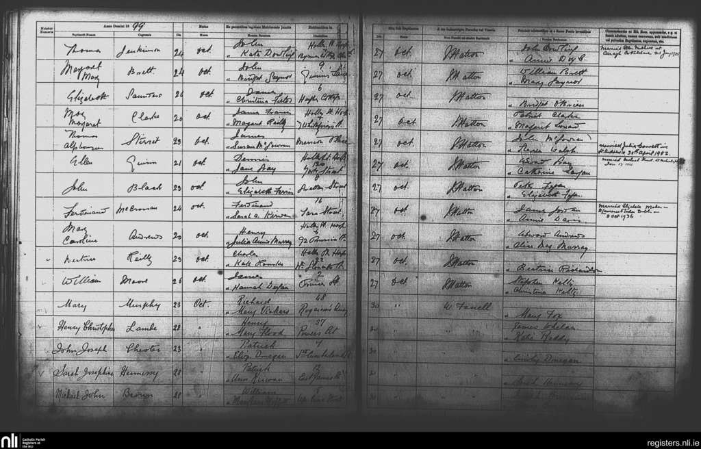 St. Andrew's, Dublin city; County of Dublin; Archdiocese of Dublin. Baptisms, Oct. 1899