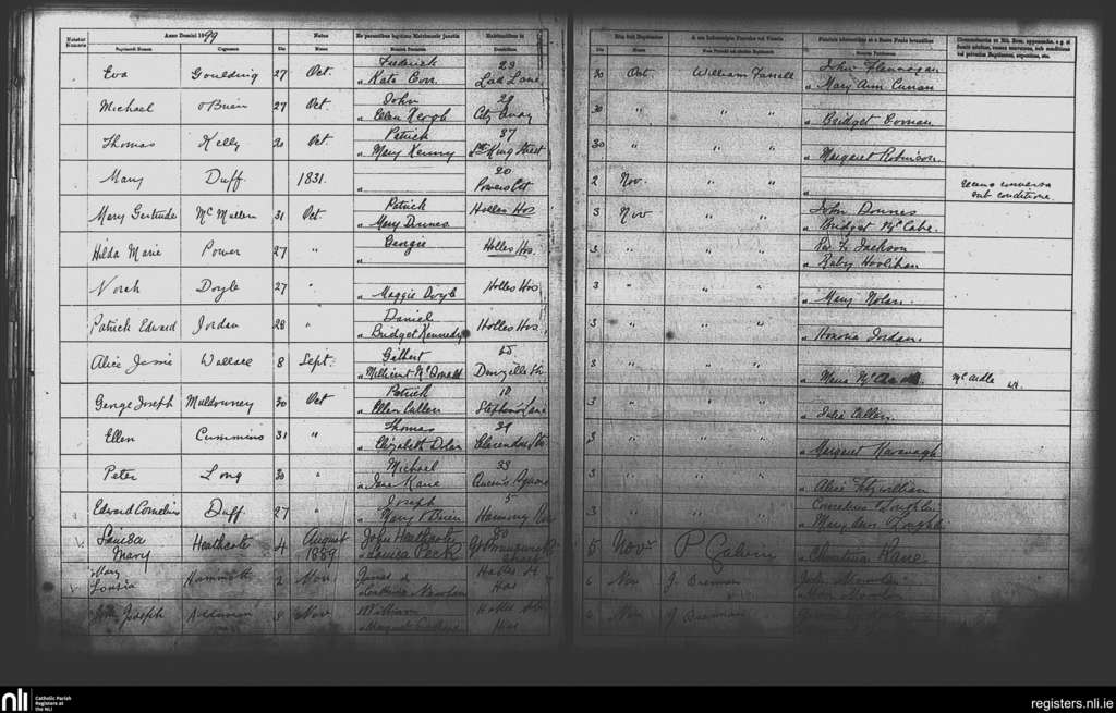 St. Andrew's, Dublin city; County of Dublin; Archdiocese of Dublin. Baptisms, Oct. 1899 to Nov. 1899