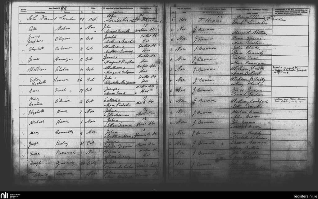 St. Andrew's, Dublin city; County of Dublin; Archdiocese of Dublin. Baptisms, Nov. 1899