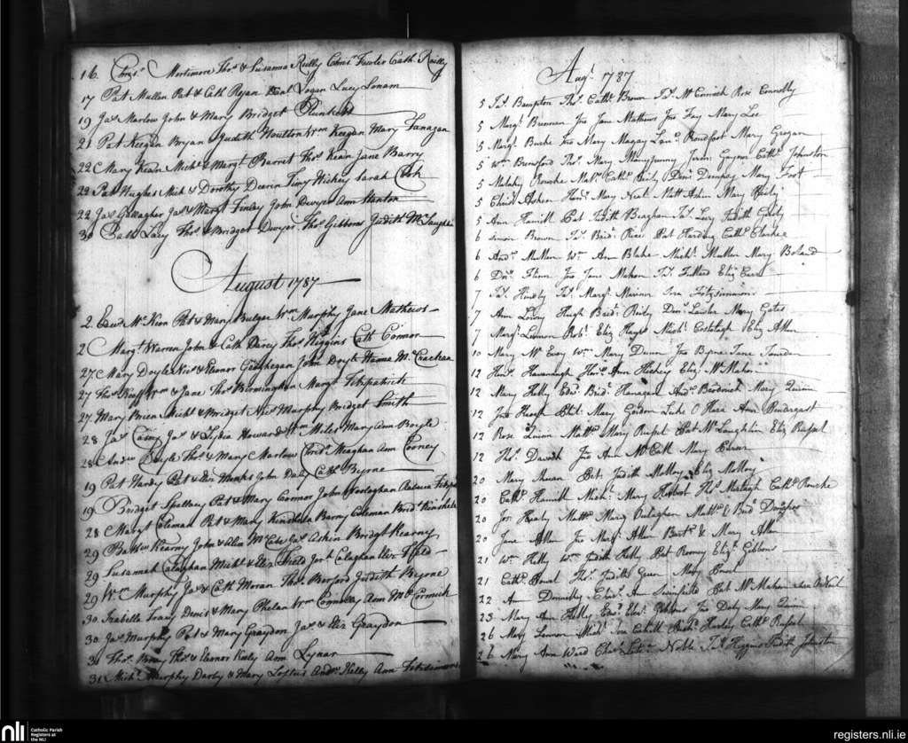 St. Catherine's, Dublin city; County of Dublin; Archdiocese of Dublin. Baptisms, July 1787 to Aug. 1787