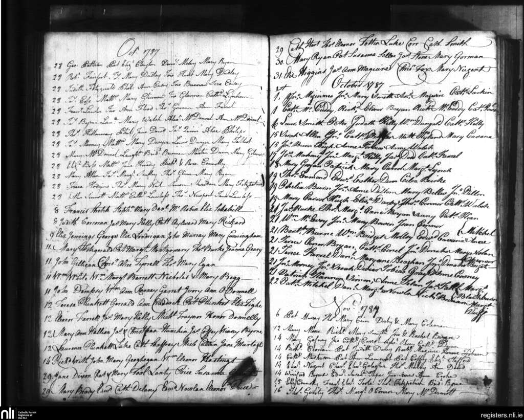 St. Catherine's, Dublin city; County of Dublin; Archdiocese of Dublin. Baptisms, Oct. 1787 to Nov. 1787