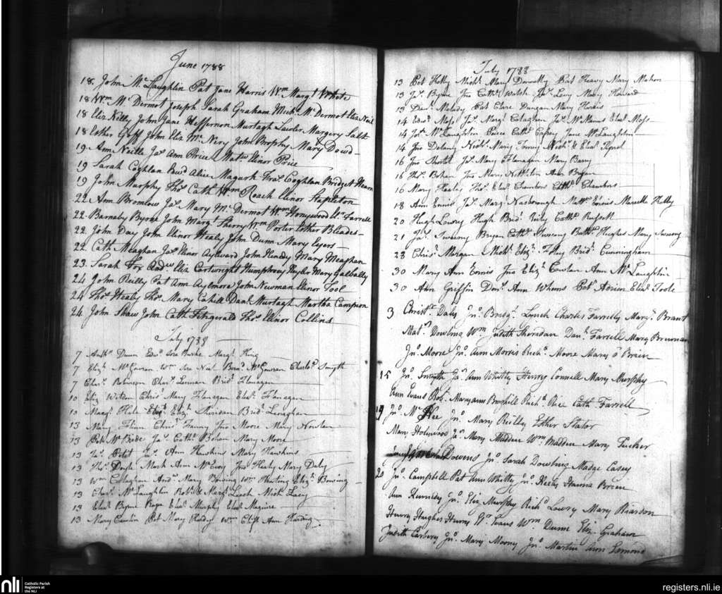 St. Catherine's, Dublin city; County of Dublin; Archdiocese of Dublin. Baptisms, June 1788 to July 1788