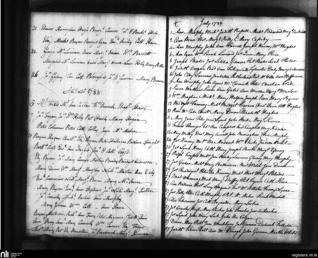 St. Catherine's, Dublin city; County of Dublin; Archdiocese of Dublin. Baptisms, July 1788 to Aug. 1788