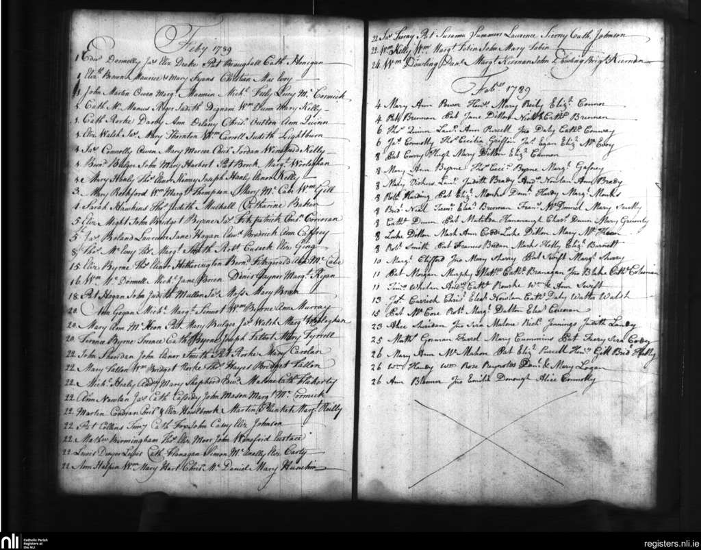 St. Catherine's, Dublin city; County of Dublin; Archdiocese of Dublin. Baptisms, Feb. 1789