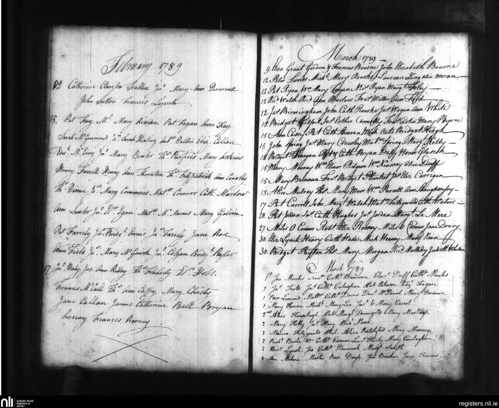 St. Catherine's, Dublin city; County of Dublin; Archdiocese of Dublin. Baptisms, Feb. 1789 to Mar. 1789