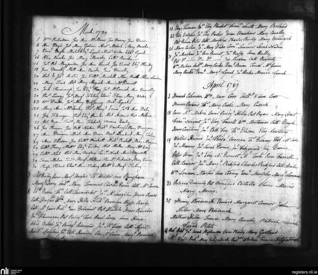 St. Catherine's, Dublin city; County of Dublin; Archdiocese of Dublin. Baptisms, Mar. 1789 to Apr. 1789