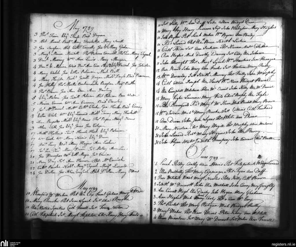 St. Catherine's, Dublin city; County of Dublin; Archdiocese of Dublin. Baptisms, May 1789 to June 1789