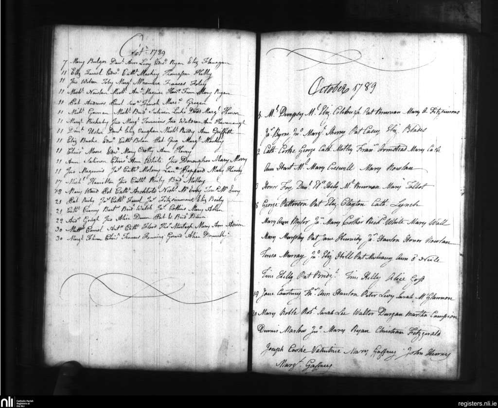St. Catherine's, Dublin city; County of Dublin; Archdiocese of Dublin. Baptisms, Oct. 1789