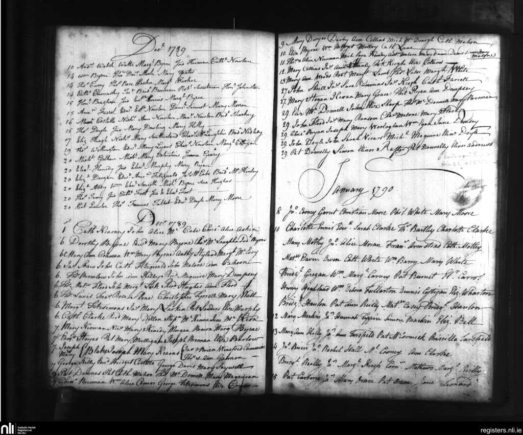 St. Catherine's, Dublin city; County of Dublin; Archdiocese of Dublin. Baptisms, Dec. 1789 to Jan. 1790