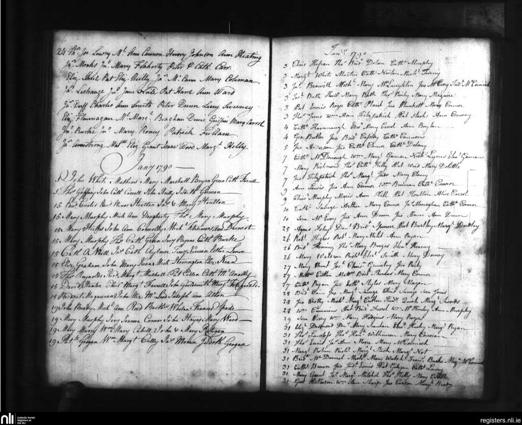 St. Catherine's, Dublin city; County of Dublin; Archdiocese of Dublin. Baptisms, Jan. 1790