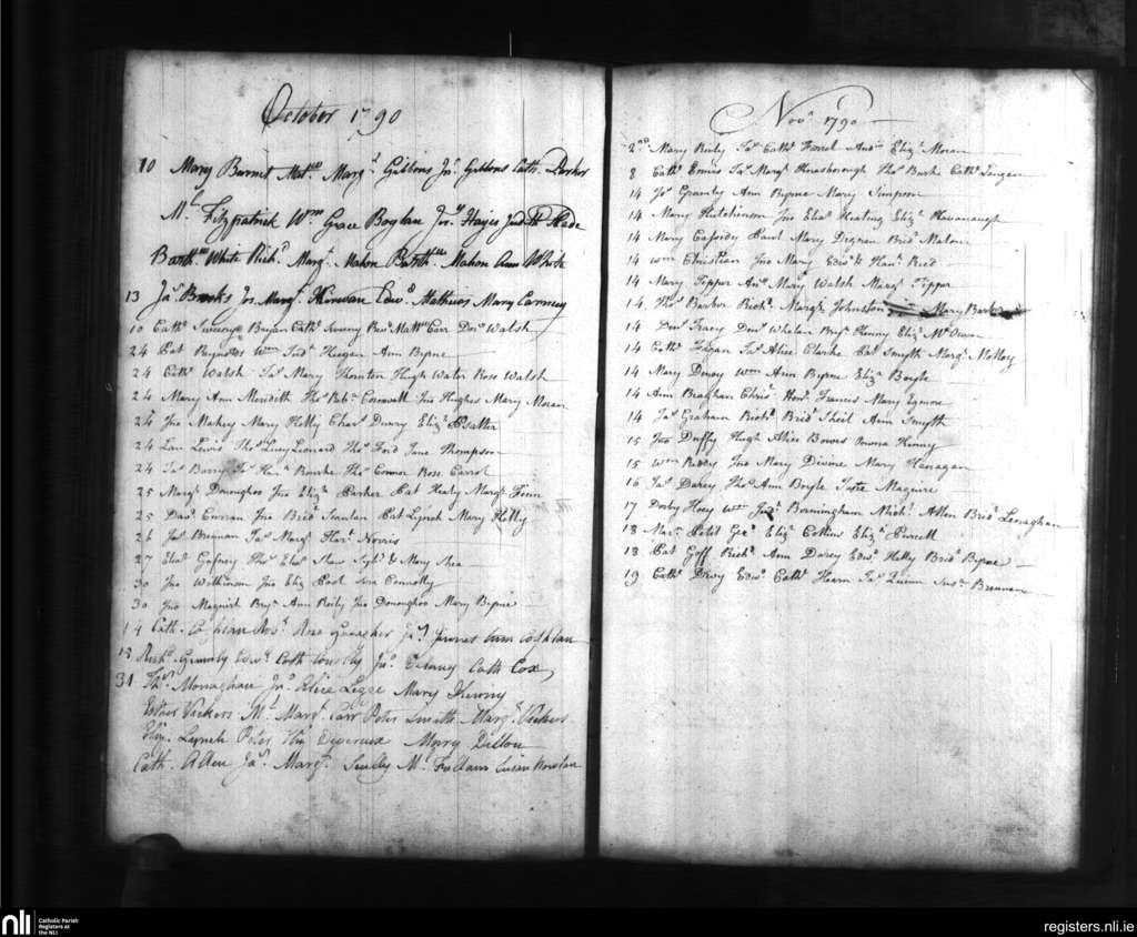 St. Catherine's, Dublin city; County of Dublin; Archdiocese of Dublin. Baptisms, Oct. 1790 to Nov. 1790