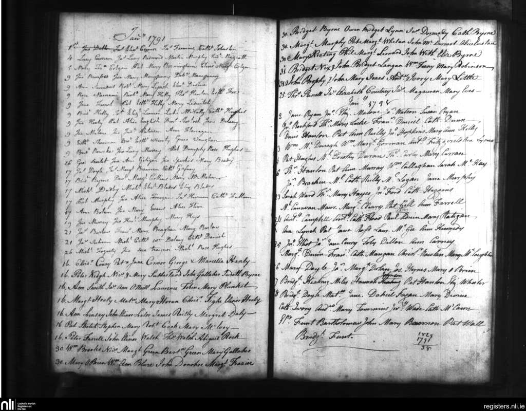 St. Catherine's, Dublin city; County of Dublin; Archdiocese of Dublin. Baptisms, Jan. 1791