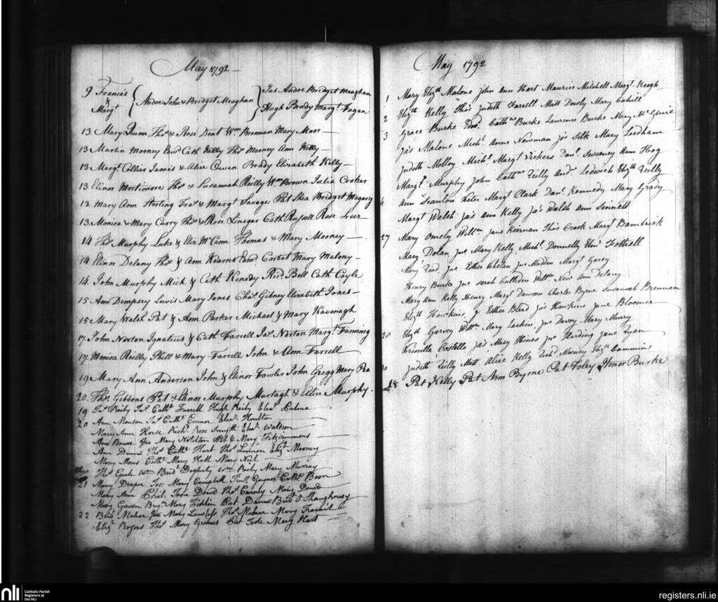 St. Catherine's, Dublin city; County of Dublin; Archdiocese of Dublin. Baptisms, May 1792