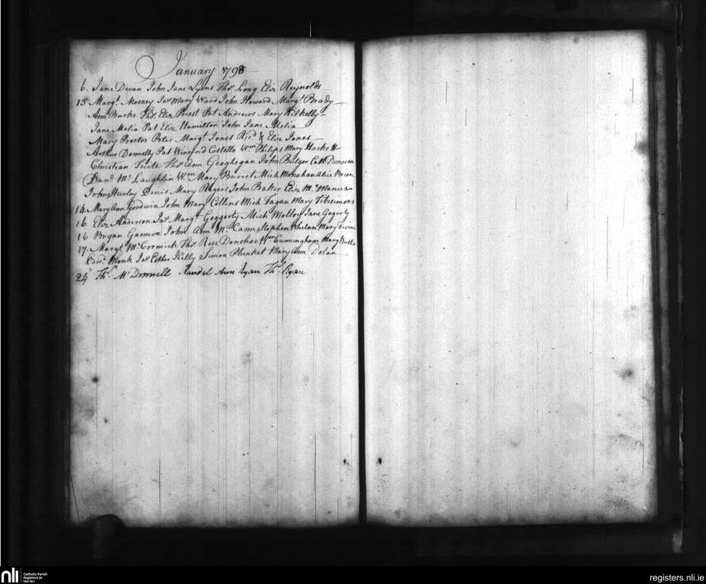 St. Catherine's, Dublin city; County of Dublin; Archdiocese of Dublin. Baptisms, Jan. 1793