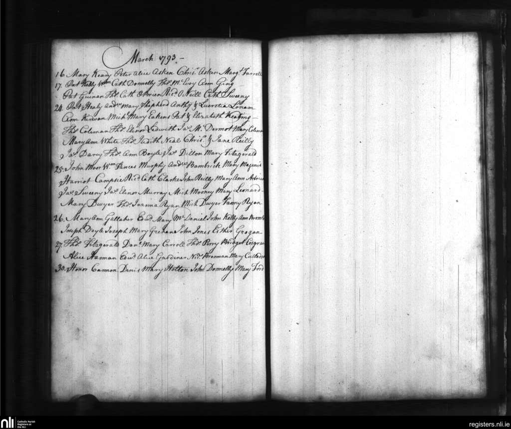 St. Catherine's, Dublin city; County of Dublin; Archdiocese of Dublin. Baptisms, Mar. 1793
